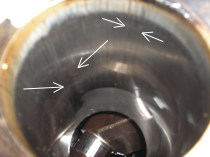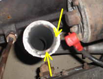 So, to test if the problem is ongoing, a new spark plug is put into No1 cylinder and the Land Rover is road tested again. Result is a brief improvement in performance but then back to serious loss of power. On removing the new spark plug a drop of fresh oil is seen on the plug. At this point, shining a torchlight into No1 cylinder shows black oil deposits on the top of the cylinder head. So oil is entering